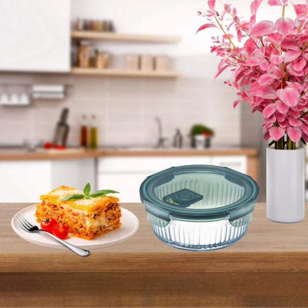 Hľadáte nádobku, ktorá poslúži ako na skladovanie potravín tak aj na zapekanie? Okrúhla, žiaruvzdorná sklenená nádobka s vekom je perfektnou voľbou. Umožňuje piecť pokrmy pri teplotách až do 220°C a mraziť až do -20°C, čo vám dáva úplnú voľnosť pri príprave pokrmov. Vďaka tesnému tesneniu je skladovanie potravín bezpečné a pohodlné a vetrací otvor vo viečku umožňuje ohrev v mikrovlnnej rúre bez toho, aby ste museli sňať viečko. Nádobka sa perfektne hodí do rôznych priestorov v chladničke, mrazničke alebo v kuchynských skrinkách a uľahčuje tak organizáciu kuchyne.
