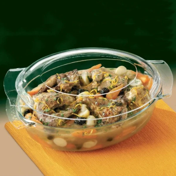 Žiaruvzdorný riad je vyrobený z bórokremičitého skla s unikátnymi vlastnosťami: odolné voči vysokým a nízkym teplotám: od -40°C do 300°C; vhodné pre použitie v peciach - elektrických, plynových a mikrovlnných rúrach; je prispôsobený na skladovanie v chladničke alebo mrazničke; možno umývať v umývačkách na riad.