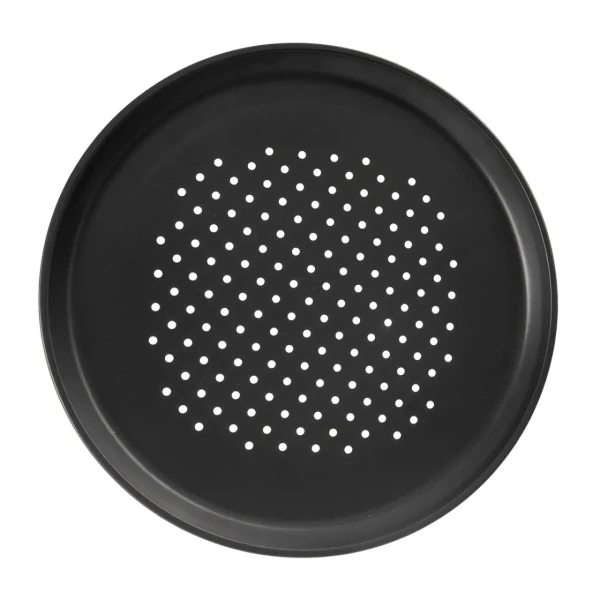 Okrúhly plech s priemerom 32 cm je opatrený nepriľnavým teflónovým povrchom a perforovaným dnom, ktoré zabezpečuje lepšie prúdenie horúceho vzduchu. Vďaka tomu sa cesto prepečie rovnomerne aj zo spodnej strany a výsledok sa približuje pečeniu v kamennej peci.