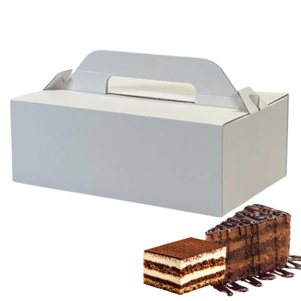 Papierová krabica na zákusky je praktickým a elegantným riešením na balenie, prenášanie a skladovanie zákuskov, koláčov a dezertov. Vďaka svojim rozmerom je ideálna na použitie v cukrárňach, pekárňach, kaviarňach aj pri domácich oslavách.