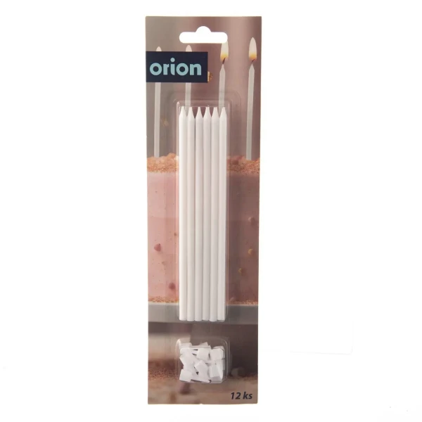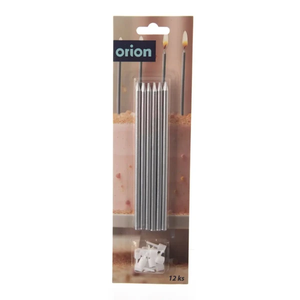 torte. V balení je 12 kusov sviečok s plastovými nástavcami s hrotmi.