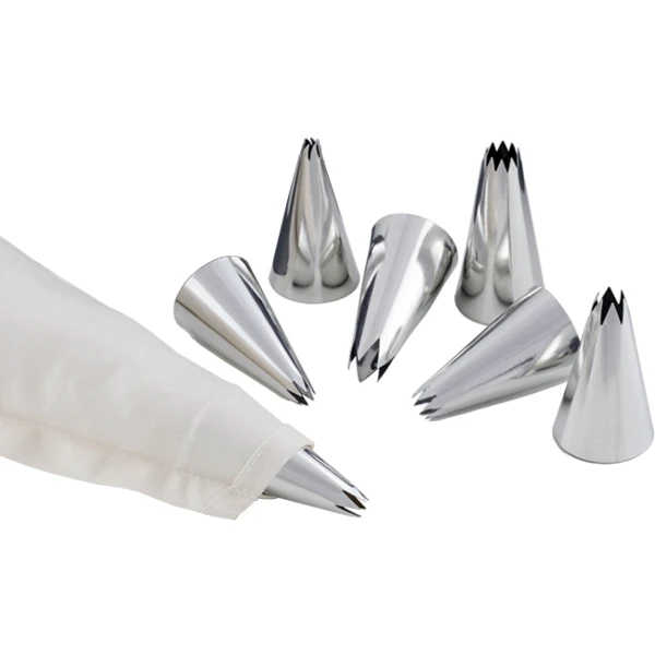 Táto sada obsahuje pogumované cukrárske vrecko (35 cm) a 7