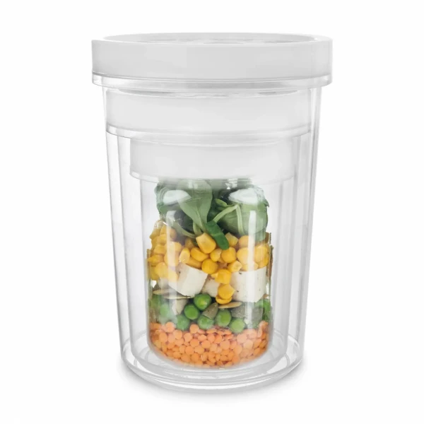 Hodí sa na uskladnenie strukovín, orieškov, korenia a ďalších potravín a pochutín. Môžete ju tiež využiť na prenášanie pripravených pokrmov, ako sú raňajkové kaše, puding, ovocie s tvarohom alebo iných desiat. Viečko a silikónové tesnenie zabraňujú rozliatiu alebo vysypaniu obsahu nádoby. Je možné ju vložiť do chladničky a mrazničky alebo ju umývať v umývačke riadu. Po sňatí plastového viečka ju môžete použiť aj na ohrievanie potravín v mikrovlnnej rúre.