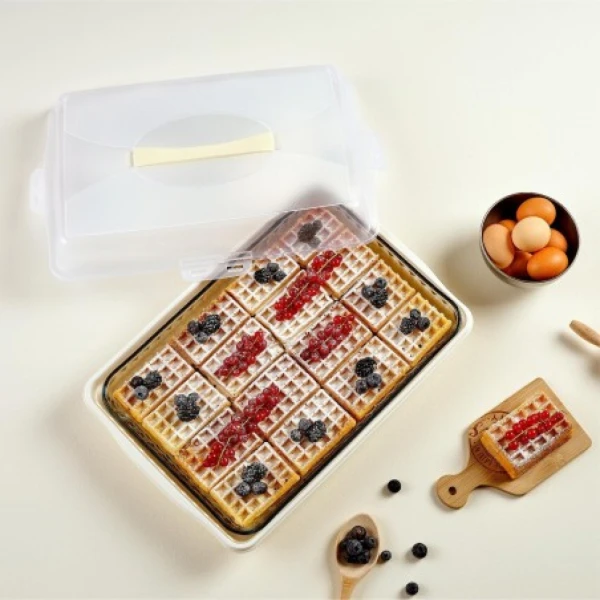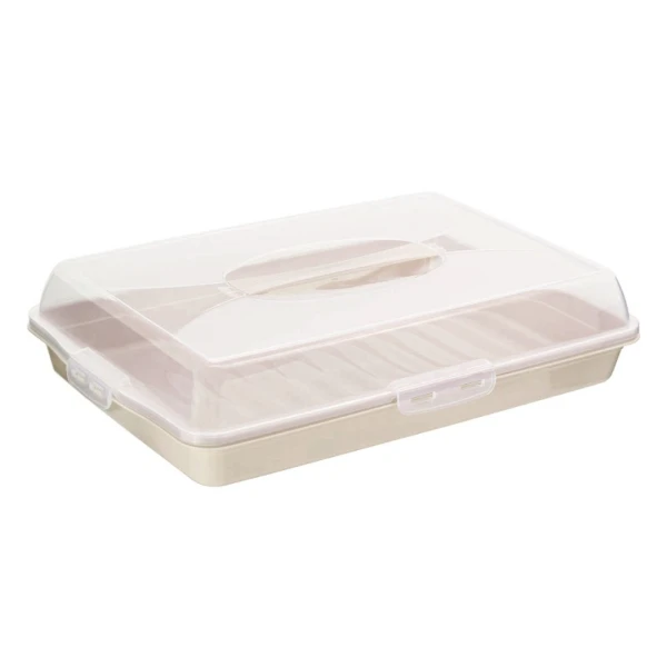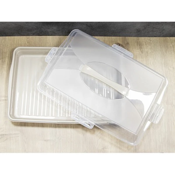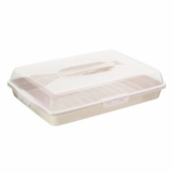 Obdĺžniková nádoba na tortu vyrobená z najkvalitnejšieho materiálu, ktorý sa nerozbije. Neobsahuje škodlivé BPA Free látky . Ideálne na skladovanie potravín a pečiva. Uzavretý kryt so 4 západkami a praktickou rukoväťou umožňuje pohodlné prenášanie nádoby. Nádoba je dostupná v 6 farebných variantoch na výber. Praktický a potrebný produkt v každej domácnosti.