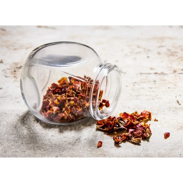 Zaujímavá sklenená dóza v rozmere 10x7,5x10 cm s nerezovým skrutkovacím viečkom uloží prehľadne najrôznejšie sypké suroviny, dochucovadlá, ale aj bylinky, korenie, sušené ovocie, orechy, raňajkové cereálie a cukríky. Majitelia domácich miláčikov ju môžu využiť pre skladovanie maškŕt, granúl a ďalšieho kŕmenia.