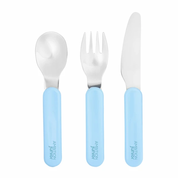 modrou, plastovou rukoväťou. Tieto ľahké a šikovné príbory sú perfektne tvarované
