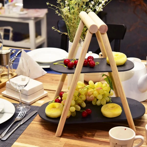 Stojan servírovací 2poschodový bridlicový