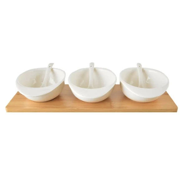 Servírovací set WHITELINE obsahuje misky, lyžičky a praktickú tácku, vďaka čomu je ideálny na štýlové servírovanie rôznych pochutín. Vhodný je na podávanie dipov, omáčok, orechov, olív, dezertov či drobného občerstvenia.