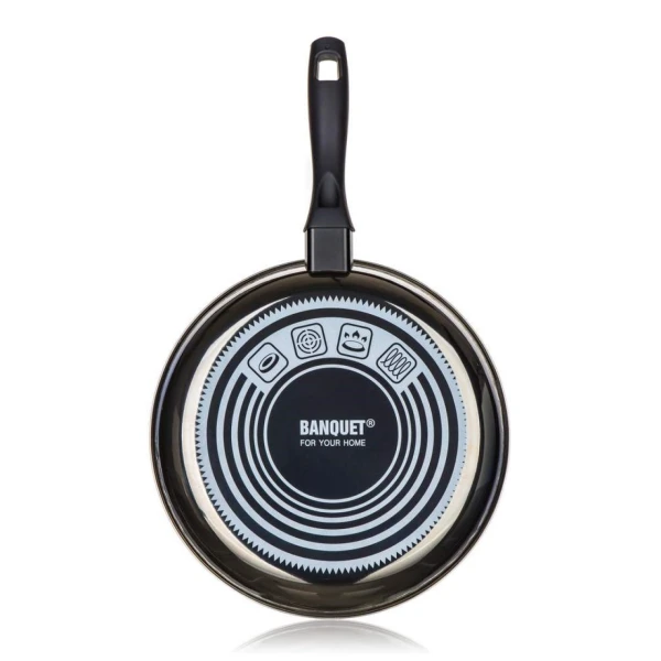 Smaltovaná panvica BANQUET METALLIC Black s veľkým priemerom 28 cm je ideálna na prípravu väčších porcií jedál, mäsa, zeleniny či rodinných obedov. Kvalitný nepriľnavý povrch umožňuje varenie s minimálnym množstvom tuku a zabraňuje pripaľovaniu.