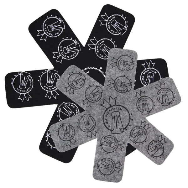 Sada ochranných podložiek Orion je jednoduchým a mimoriadne efektívnym riešením. Tieto mäkké vložky z netkanej textílie (filcu) vytvoria bezpečnú bariéru medzi jednotlivými kusmi riadu. Vďaka tomu môžete panvice stohovať bez obáv o ich poškodenie, čím predlžujete ich životnosť a zachovávate ich funkčnosť po dlhé roky.