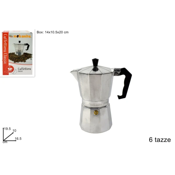 Pripravte si pravé, silné talianske espresso priamo vo vašej kuchyni. Moka kanvica je cenovo dostupný, ale spoľahlivý kávovar, ktorý vám umožní vychutnať si autentickú kávu, kedykoľvek na ňu dostanete chuť. Je určená na prípravu 6 šálok (klasických malých šálok moka kávy, približne 3 dcl výsledného nápoja) aromatického nápoja.