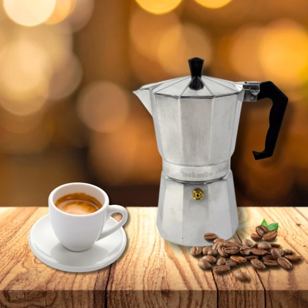 Kávovar je vyrobený z kvalitného hliníka, ktorý skvele vedie teplo, a je vybavený bezpečnostným ventilom pre vašu pokojnú myseľ. Je vhodný pre použitie na plynových, elektrických a sklokeramických sporákoch.