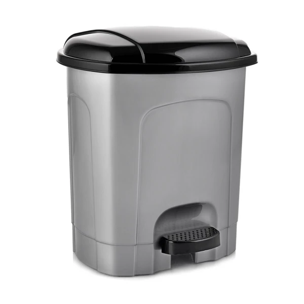Sivo čierny odpadkový umelohmotný kôš s objemom 11,5l. Otváranie vďaka nožnému pedálu, šetríte si vaše kríže chrbát.