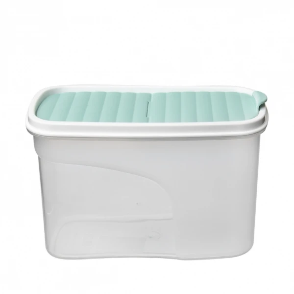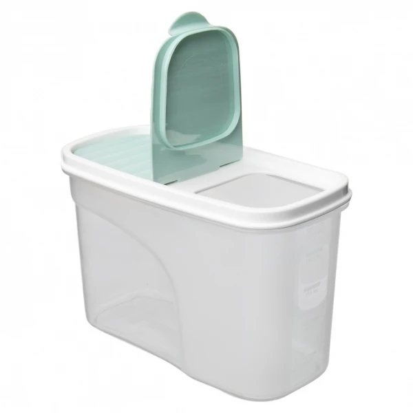 Decentné, praktické a prehľadné ukladanie sypkých surovín, múky, strukovín, cereálií a pod. To zaistí polopriehľadná plastová dóza BONNY (z PP) v objeme 1,2 l, s odklápacím viečkom (PE) v mint farebnom tóne.
