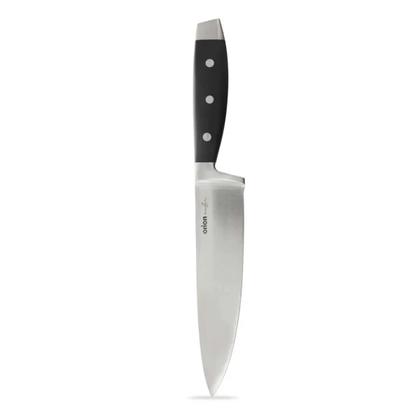 dobre drží, nôž je vyvážený, prsty sú chránené vďaka prehnutiu v časti