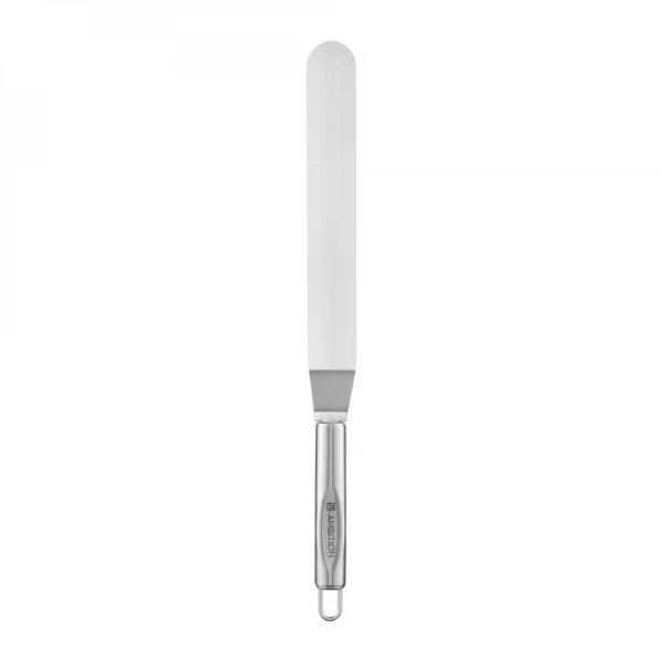 Špachtľa na tortu je nevyhnutnou súčasťou kuchynského vybavenia každého nadšenca do pečenia. Je plne vyrobená z nerezovej ocele, zaručuje trvanlivosť a odolnosť proti korózii. Je perfektnou pomôckou na presné nanášanie krémov, vyrovnanie hmoty na povrchu torty a vyhladenie polevy. Bez ohľadu na to, či ste profesionálny cukrár alebo amatér vytvárajúci sladké majstrovské diela, táto špachtľa vám umožní vyjadriť svoju kreativitu a prekvapiť svojich blízkych jedinečnými výtvormi.