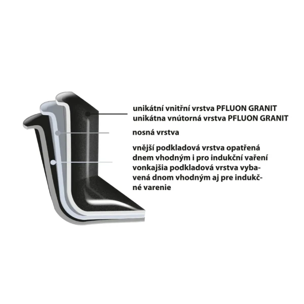 • Nepriľnavý povrch: Vysoko kvalitný PFLUON GRANIT, ktorý zabraňuje pripaľovaniu.