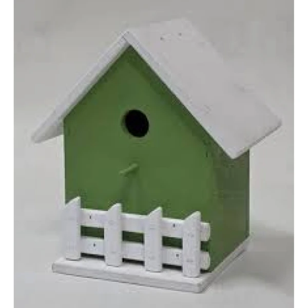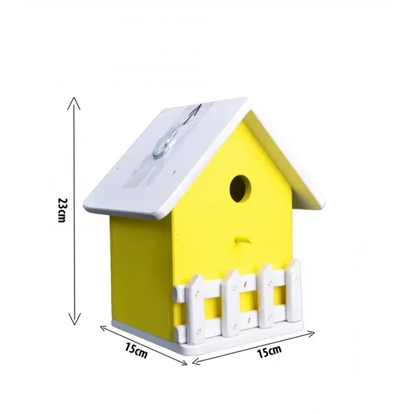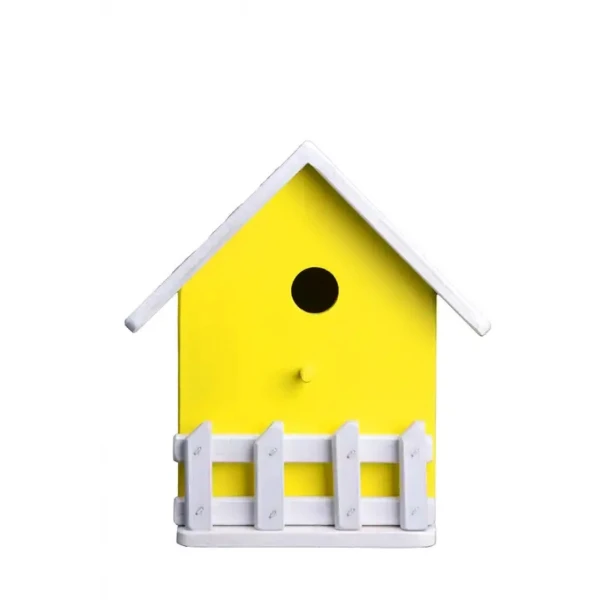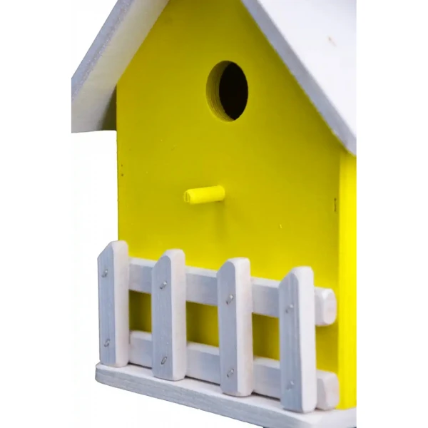 Krásna drevená žltá alebo zelená búdka pre vtáky s otvorom,