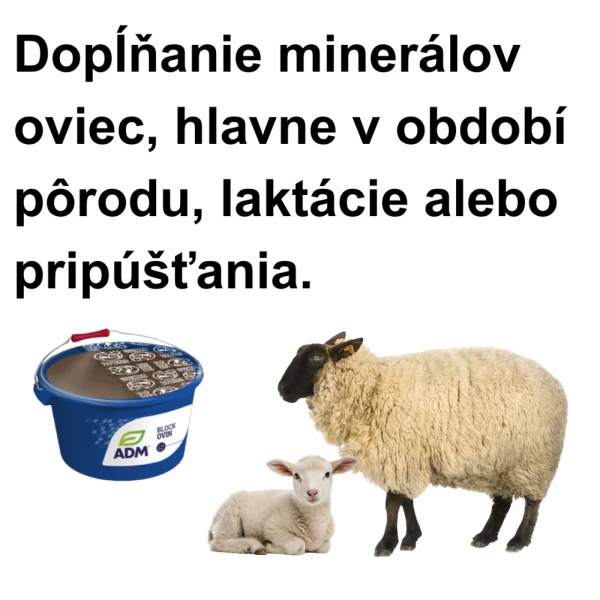 • Minerálny liz Block OVIN melasový pre mliečne a laktujúce ovce 25 kg - je minerálne vitamínové melasované krmivo pre ovce, ktoré dodáva minerály, stopové prvky a vitamíny nevyhnutné pre ovce. Je bohatý na vitamín B1 a chelát zinku. Vhodné pre mliečne a laktujúce ovce. Môže byť distribuované aj pre dobytok a kozy.