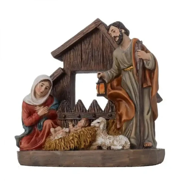 s LED osvetlením - zobrazujúci Svätú rodinu + ovečku, maštaľka s