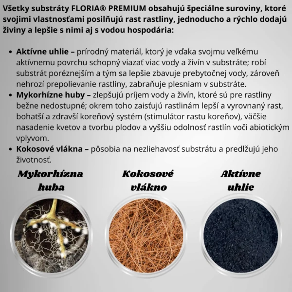 Zloženie: biela a čierna rašelina, kokosové vlákno, perlit,