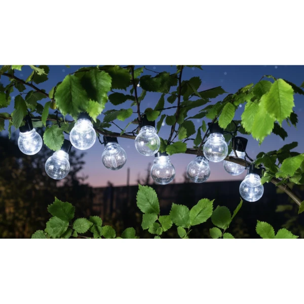 Napájané slnečným panelom, vďaka čomu ich môžete umiestniť tam, kde len chcete, a ušetriť na účtoch. Je to pekná ozdoba, ktorá pridá vašej priestoru jedinečnú atmosféru počas letných večerov. Rovno osvetlí izbu alebo terasu či balkón. Je vodotesná (IP44).
