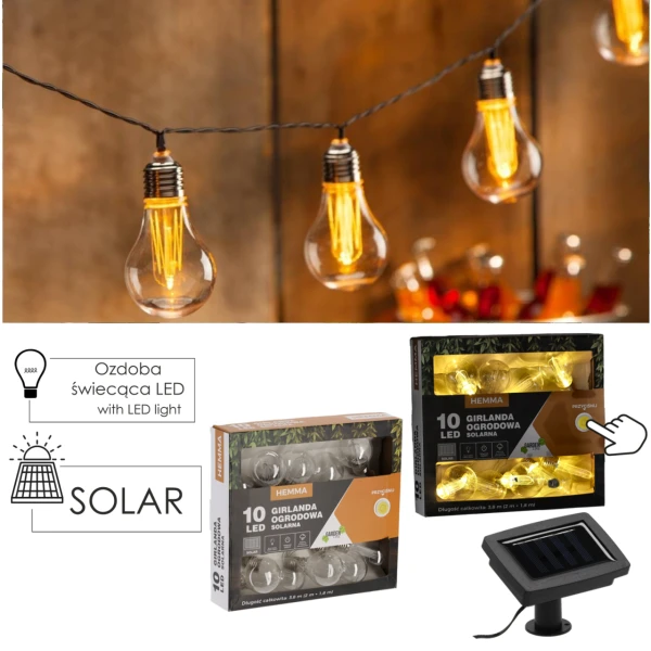 • 10 kusov slnečných žiaroviek o veľkosti približne 9 cm každá.