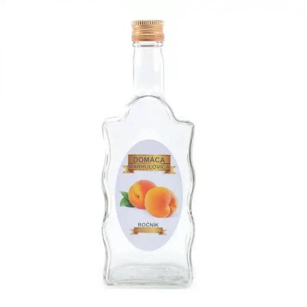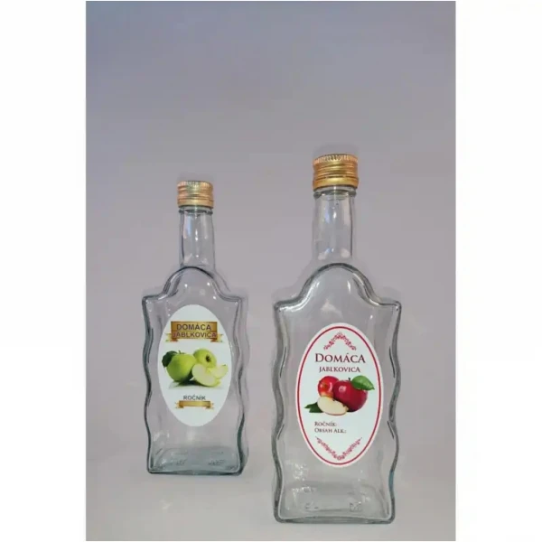 Fľaša sklo 0,5L hranatá Jablko/Marhuľa/Slivka/Hruška